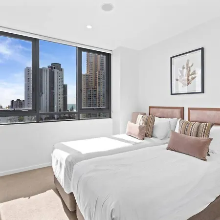 Com piscina privada e área coberta, o A Spacious And Modern 2 Bedroom Apartment In Paradise Gold Coast está situado no bairro Surfers' Paradise de Gold Coast a 25 minutos a pé de Clube de Iate Southport.